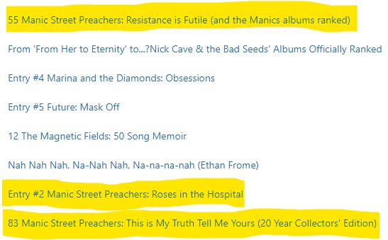 (*Yes, yes, apart from Nicky Wire occasionally. Were you not listening when I was taking about him always being the outlier?)