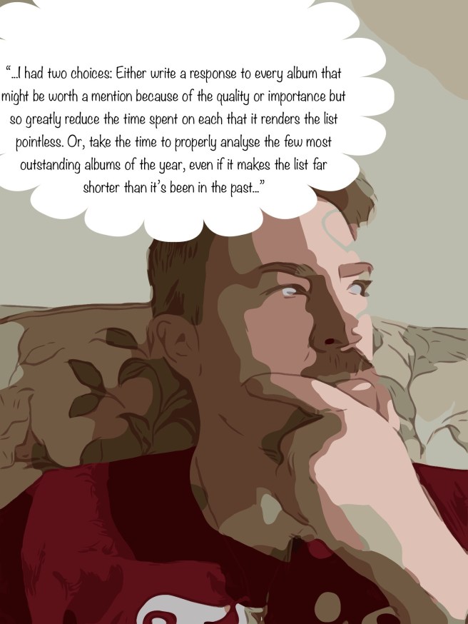 Sigh… I’m doing a lot of sighing to start this list, aren’t I? Probably because we’re currently on the part of the countdown where I’ve included albums that I didn’t really like that much, but they’re buy artists that I have a lot of time for so I’ve let them slide into the list out of respect. Soon, we’ll get to the part pf the countdown where I list weird albums that I couldn’t really call ‘good’ in any sane sense, but still wanted to give them shout-outs. After that, we’ll get to the actually great albums, OK? It’s gonna be a lot of fun!