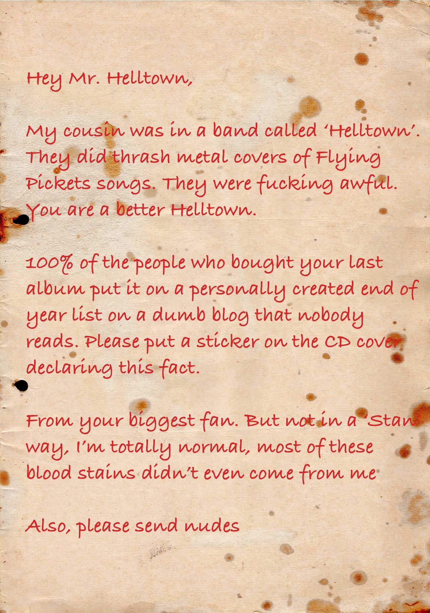 That’s me! I’m the only fucker there!! Does that mean nobody else bought this record?? That’s fucking re-donk-ulous! This isn’t ‘one sad, fat, lonely, middle aged ginger fan’ music! There are honestly few people these days who make raw but beautifully produced acoustic guitar music with frank and incisive lyrics much better than Mr. Helltown. Sure, I doubt he’ll ever climb higher on this list than last year’s 59 (unless he manages to craft another song as freaking perfect as Novel, of course), but he’s always likely to be on the list, because there’s always a place for music like this, and there’snot really anyone else doing music like this as well as he makes music like this.