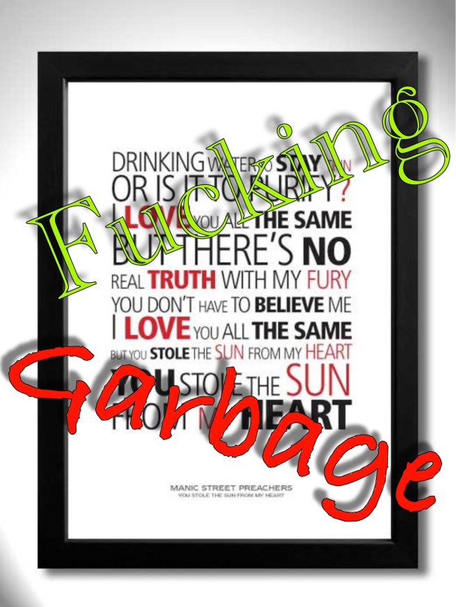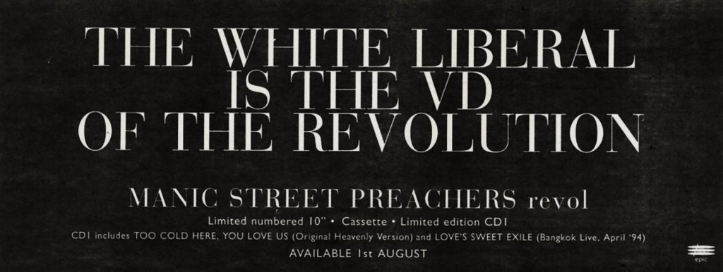 It’s just that one of the most common criticisms of early Manics is that their lyrics were often barely comprehensible word salads, that Richey and Nicky were more interested in slogans than writing a proper coherent lyric. I’d argue that wasn’t the case, that even in their more, erm, manic early days their grand statements and one liners would always make sense in the context of the song. It was actually one of the major things that made The Manics stand out is how they could write exhilaratingly provocative lyrics where every line would sound like a slogan, but the subject of the song would always be represented.