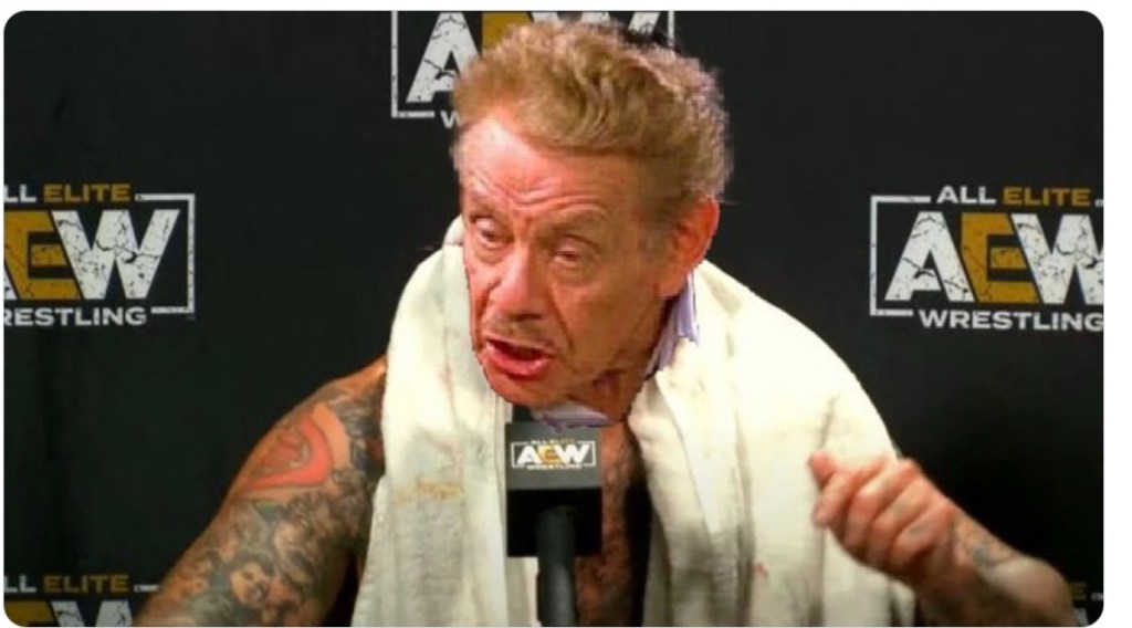 The fact that I have to sit up here, because we have irresponsible people who call themselves EVPs and couldn’t fucking manage a Target, and they spread lies, and bullshit, and put into the media that I got somebody fired when I have fuck all to do with him. Want nothing to do with him. Do not care where he works. Where he doesn’t work. Where he eats. Where he sleeps. And the fact that I have to come up here and do this, in 2022, is fucking embarrassing. And if y’all (the assembled press) are at fault: fuck you. If you’re not: I apologise. But what did I ever do, in this world, to deserve an empty headed fucking dumb fuck like Hangman Adam Page to go out on national television and fucking go into business for himself? For what, what did I ever do? Dave (Meltzer, journalist in attendance), what did I do? Didn’t do a God damn thing