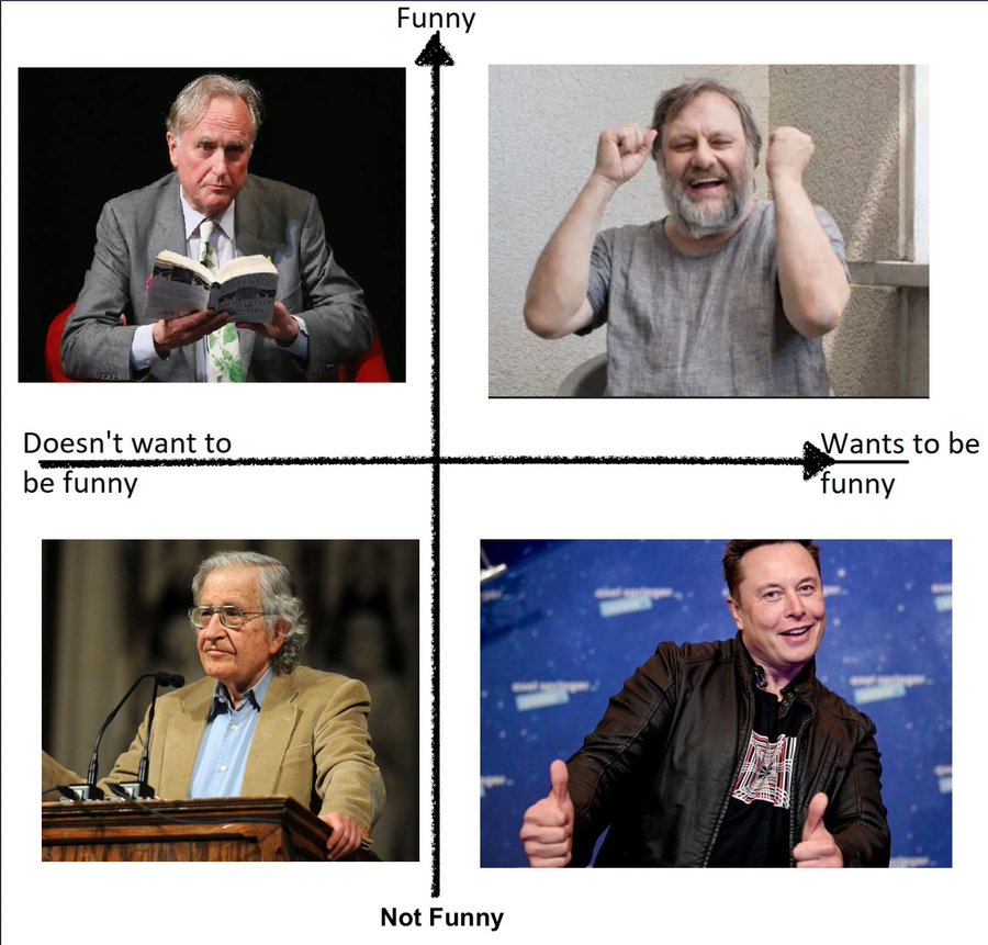 Elon is really, really not funny. Which isn’t a crime. Doctor Martin Luther King jr., for example, had absolutely no patter. Dry as a bone, that guy, dry as a bone. But history is nonetheless going to look kindly on him, and his lack of humour wasn’t the reason the CIA had him assassinated. But Elon wants to be funny. He wants to be funny more than he wants his billions of dollars. And, considering the amount of worker abuse he’ll conduct in order to shave pennies off to supplement his billions, that means he wants to be funny a whole damn lot. He wants to be a funny memelord so much that he actually overpaid for Twitter, declared that ‘comedy was legal’, and then possibly oversaw its complete demise. That’s actually quite beautiful. And, ironically enough, fucking hilarious.