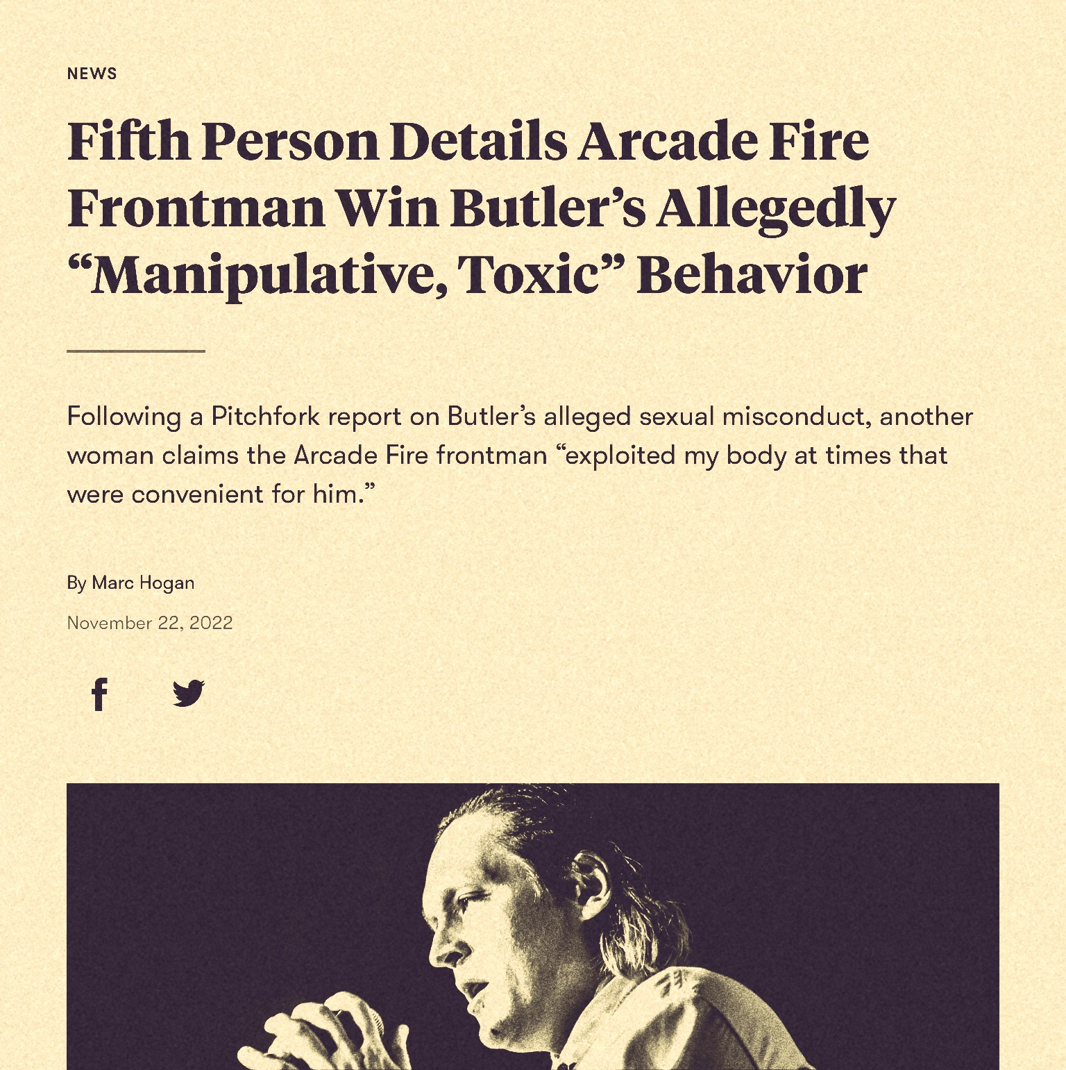 Dude, I’m not so sure anymore. I guess I always remembered the ‘accusations’ as being of him merely being grossly inappropriate, or perhaps an awkward power play and cringe-laden consent plea similar to Aziz Ansari’s own misdemeanours, but reading about everything in more detail for this post… I dunno, man, this stuff is really gross. The victims were aged between 18 and 23, Butler was 35 at the youngest and was at all time in one of the biggest rock bands in the world. I’ve focused on one story by an 18 year old victim, but many of the behaviour is echoed across the five accusations that have come out. That have come out. I believe we have to assume these are the only five times Win has ever acted grossly inappropriately with women/girls half his age. I’m sure when I started writing this post my head was full of caveats and explanations, empathy and sympathy. Now I don’t know. This isn’t good.