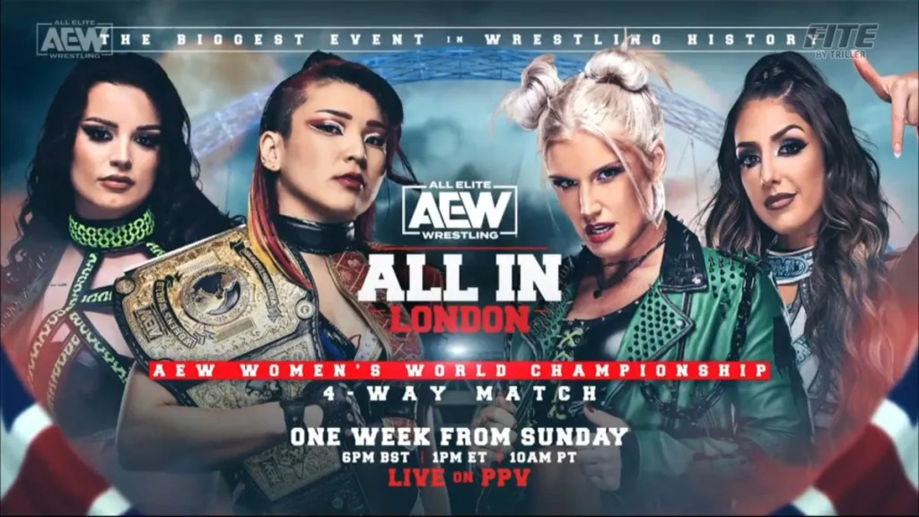 So AEW’s women’s division is an absolute fucking joke. Not because of the talent, I should make that clear – they have some of the greatest female wrestlers in the world, whether assigned female at birth or not – simply because the company places absolutely no importance on female wrestling. It’s a running joke that the company – now more than four years after the first event under the AEW banner – still never has more than one women’s division match on every show, and even then it’s so obvious that 90% of these matches are an attempted virtue signal only on the show because some weird hairy guy backstage has rolled his eyes and said “I suppose we’ll have to stick a women’s match on, or else you know that lot will complain…”. There is never more than one angle or storyline in the women’s division at any one time, so even if more wrestlers might make themselves impossible to ignore, they’re simply folded into that one storyline that they allow themselves to run rather than the company expanding the tiny bit of effort it would take to properly spotlight them (Willow Nightingale says hi). Dude! That might mean two women’s matches on a show! That’s so gay! I don’t know if this goes back to Tony Khan getting his major inspiration as a young fan at the incredibly influential but undeniably misogynistic ‘outlaw’ organisation ECW, but he obviously doesn’t see any point in women’s wrestling. Back when (terrible wrestler, amazing professional wrestler) Jade Cargill was wrestling, basically specialising in sub five minute squash matches, you might have got two women’s matches on a PPV, but now she’s on hiatus and people expect matches to be approaching a normal length? Yeah, you’re getting your one match again, like we did at All In London. AEW had the hutzpah to call back to the company’s ‘proud history’ of AEW women’s four ways, going back to the women’s match at the original four way at All Out 2018. When what that actually means is that back in 2018 they thought “Shit, we should probably have a women’s match, let’s just chuck four wrestlers together” and here they are five years later doing the exact same thing.