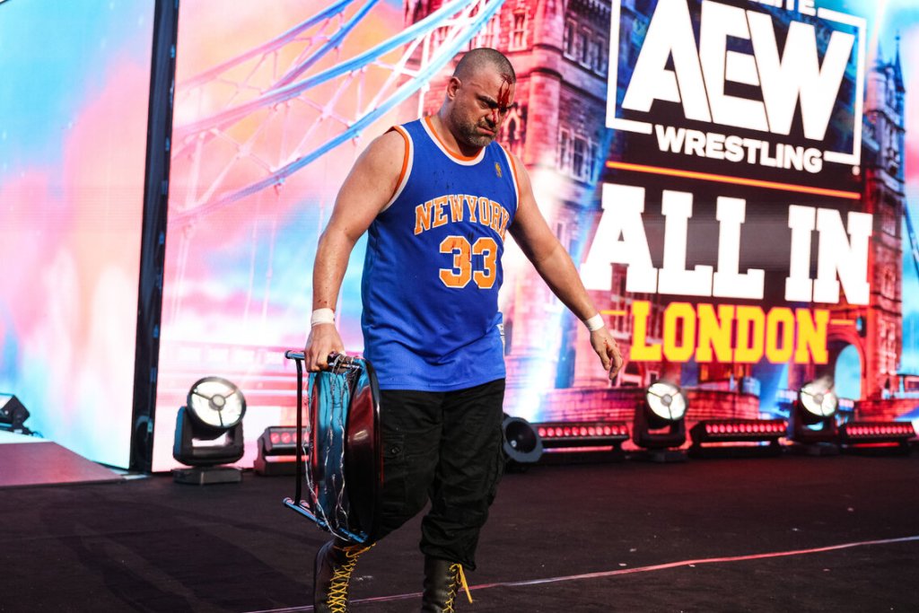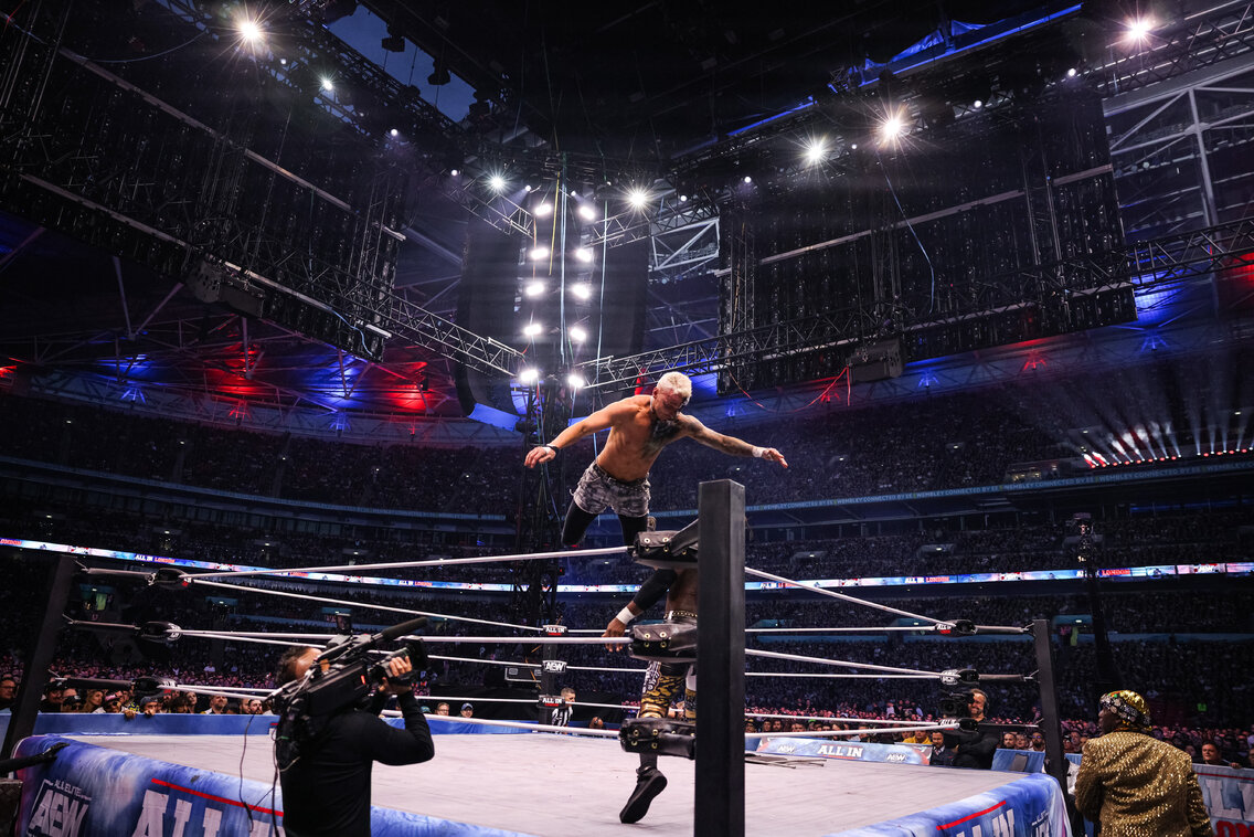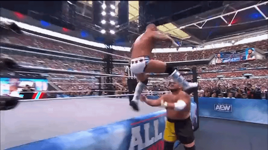 This was the best Stadium Stampede/Anarchy in the Arena/Blading at the Catering match I’ve ever seen, and it’s one of the highlights of the show. It began by deftly poured its story (because there was a clear story that was tightly followed) far out all over one of the biggest arenas on the continent – though never neglecting to have constant carnage in the ring – until everything merged back in onto the ring like lungs slowly collapsing back in on themselves. It can be a bit overwhelming keeping up with all the Eddie Kingston Lore™ at times – he seems to be in decades long feuds with literally everyone. Probably all related to his sister’s* wedding – but here the narrative was clear: he hated Santana and Ortiz a bit; he especially hated Jon Moxley, but he especially hated Claudio Castagnoli. The way the big moments were first scattered all over the stadium, before finally compressing into the ring for a breathless final five minutes.