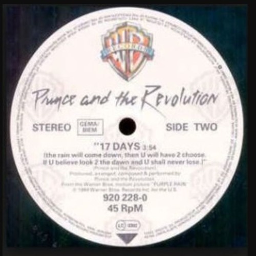 The copywrited full title is actually (deep breath now) 17 Days (the rain will come down, then U will have 2 choose. If U believe look 2 the dawn and U shall never lose), but can we just look away from the encroaching religious morality in Prince’s music/life for one second and appreciate that motherfucking trembling bass for a second? Thanks.