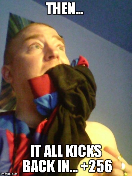 Yeah, bodies have a disgustingly human insistence of working in self-destructive ways. Not accepting capitalism’s reality will likely get you killed, or at least unfed and homeless. And not explicitly picking a side on the socially constructed gender binary? Yeah, that’s a self-destructive paddling. But also (tee-hee!) bodies sometimes work in self-destructive ways (chortle!) by (GUFFAW!) literally throwing themselves from a window and destroying themselves!! ROFLcopter.