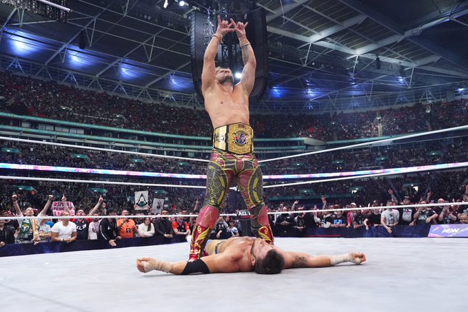 The two London All Ins so far really outline the differences between having a great product and having a hot product. In 2023, AEW were probably going through their weakest period artistically. The additions of the Ring of Honor and Collision shows were stretching the creative thin and diluting the product. They bent so far backward trying to placate CM Punk after his Brawl Out midlife crisis that they gave him his own freaking show, and he still ended up being fired and going to WWE. He was joined at the market leading company by AEW’s record TBS champion Jade Cargill. The roster was decimated by injuries to Kenny Omega, Jaime Hayter, Jon Moxley, and many others. It became overloaded with gossip and accusations, from the contract status of people like Ricky Starks to the… credible?… sexual misconduct allegations against Chris Jericho. And the product was just bad: it became infected with the worst kind of hidden camera/goofy storylines/Texas Chainsaw Massacre Deathmatch ‘sports entertainment’ nonsense more associated with WWE at its worse.