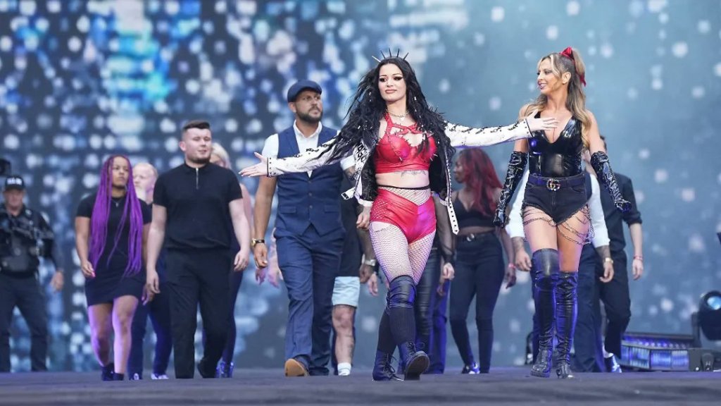 She comes out on the preshow. To interrupt a Saraya talking segment?