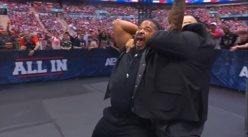 The build to All In 2023 was near enough non existent, but All In 2024 was hyped up magnificently, with several matches you’d pay to see live even if it wasn’t the only chance you had of watching the promotion all year. And yet the crowd was down twenty thousand from last year. Our group travelling to Wembley had lost one member this year, and we were theorising about how our group would get smaller and smaller each year, as the most normal person each time would drop out until only the saddest mark would remain. The person who dropped out after watching All In 2023 was definitely the coolest member, but this is all very relative: the ‘coolest’ member of a group of wrestling fans is still a person you would generally make efforts to avoid.