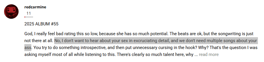 I completely disagree. Not enough songs about her bum. It’s your God given duty to appreciate her booty.
