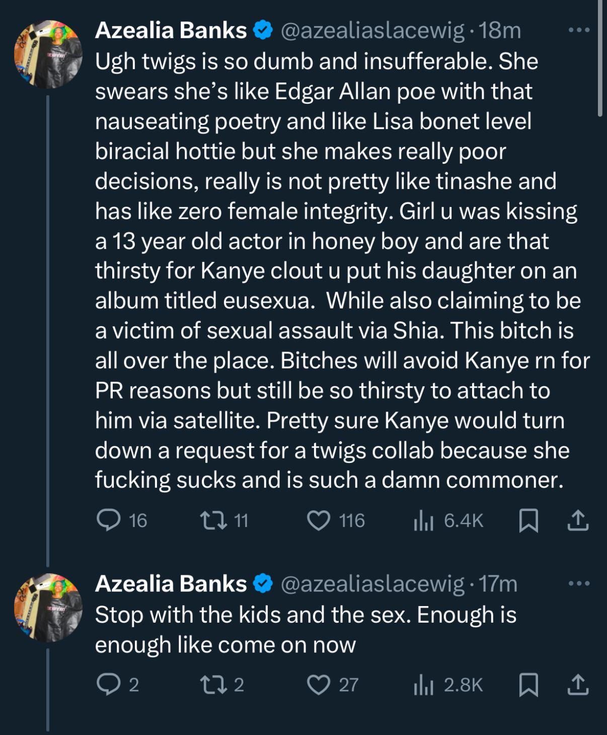 Yeah, Azealia has gone off a fucking cliff this year mentally, and that Tweet is as horrid and as mean spirited as you’d expect, but… I kinda get it…