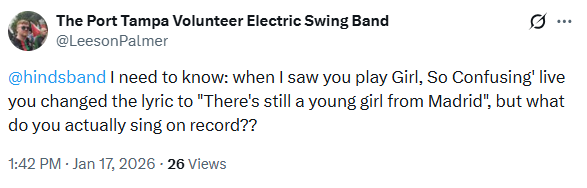 ‘Lil old Laura Jane actually got some old fashioned Conservative Cry Baby Controversy (CCBC) over this song when she played it at a Bernie Sanders rally in mid 2025, and prompted noted alt-right baby potato Tim Pool to make out like he was some sage authority on anarcho-punk to somehow legitimatise his fatheaded transphobia. It was a great time!